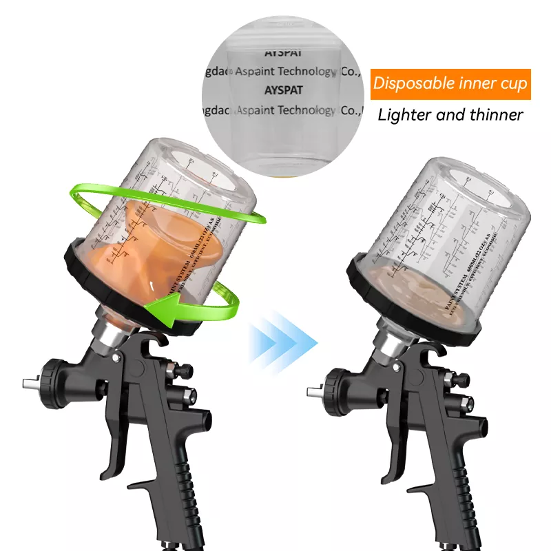 Is leagan uasghrádaithe den chéad ghlúin é an Córas Corn Péinte Indiúscartha 2.0córas cupán péint indiúscartha.Déanann dearadh nuálaíoch láimhseáil an clúdach cupán níos áisiúla athsholáthar línéar, agus ag an am céanna feabhas a chur ar an toughness an clúdach, ag ligean dó a lúbadh i dtreonna éagsúla go héasca gan breakage.The AYS3.2 cupán gunna spraeála Tá dearadh paitinnithe ar a nozzle. Is féidir linn straitéis deartha ghairmiúil a thairiscint ar na hoiriúnóirí uathúla do bhrandaí éagsúla gunna spraeála.