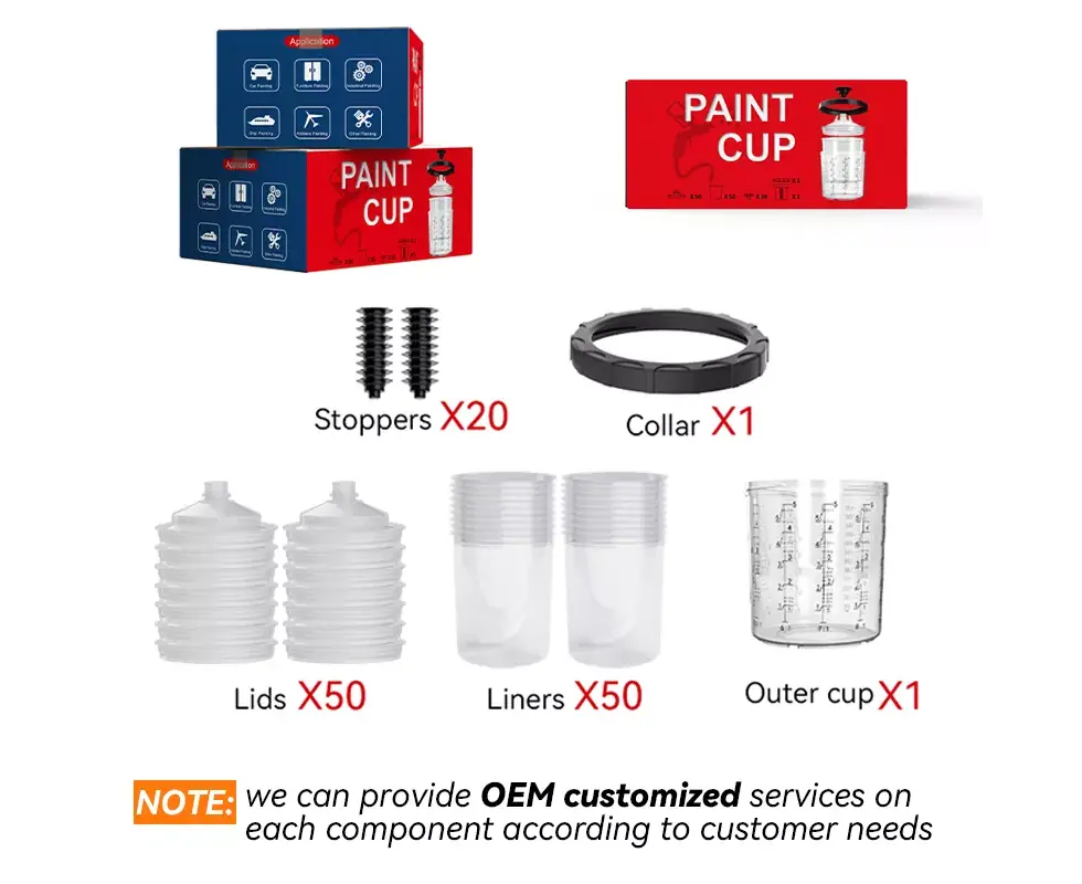 Córas cupán péint indiúscartha 650ML 2.0 is réiteach nuálaíoch atá deartha le haghaidh spraeáil éifeachtach oibríochtaí.Déanann dearadh láimhseáil nuálach an clúdach cupán ionad línéar níos áisiúla, agus freisin feabhas a chur ar an toughness an clúdach, ag ligean dó a Bend i dtreonna il go héasca gan breakage.To freastal ar riachtanais na gcustaiméirí, ár monarcha a chur ar fáil saincheaptha réitigh táirgeadh cupáin spraeála indiúscartha, lena n-áirítear saincheaptha lógónna agus scálaí a chur ar fáil ar na dathanna agus na múnlaí saincheaptha scagairí ar fáil ar na scagairí agus scálaí dearadh saincheaptha. réitigh le haghaidh pacáistiú.