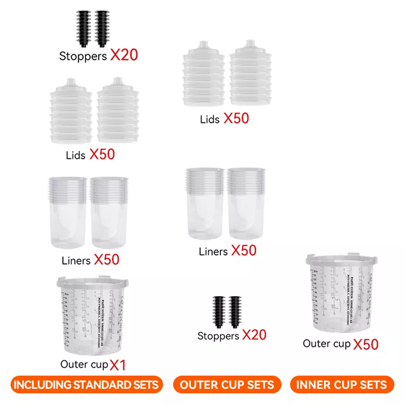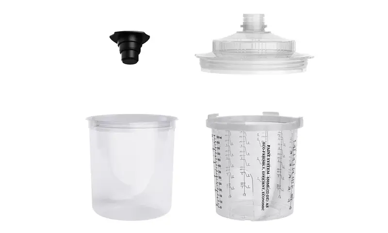 Soláthraíonn an cupán gunna spraeála indiúscartha roghanna éagsúla acmhainne (lena n-áirítear 200ml, 400ml, 650ml, 850ml), ar féidir leo freastal ar na riachtanais spraeála éagsúla ó dheisiúcháin 1-phainéal go deisiúcháin 4-phainéil agus minicíocht athsholáthair cupáin a laghdú.